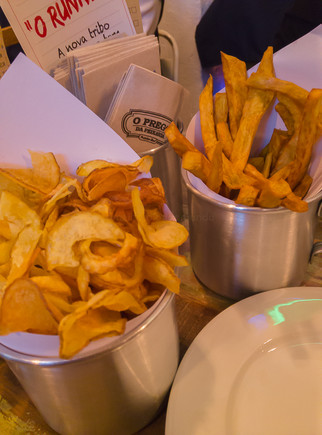Hoje saboreámos o Prego Yuppie com carne do lombo e o Burguer de Camarão com Pão de Camarinha do Sado. E claro, não perdemos a batata doce aos palitos, nem a batata frita às rodelas. Tudo excelente! Não atacámos as sobremesas, porque sinceramente (e contrariamente à carta de pregos) nada nos apelou à gula (menos mal para a linha!).